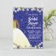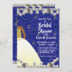 Invitación Azul real, perlas, ducha de novia afroamericana