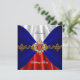 Invitación Azul Real Rojo Blanco Cumpleaños Oro Seda Joyas