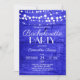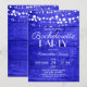 Haz una declaración audaz con esta llamativa invitación de despedida de soltera rústica. Un vibrante fondo de tablones de madera azul real brilla bajo delicadas luces de cuerda blancas, creando una atmósfera dramática y encantadora perfecta para una celebración animada y memorable.
