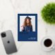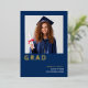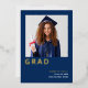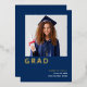 Simple Grad 2025 Real Relieve metalizado dorado Azul Invitación. La elegancia del Relieve metalizado real para la tipografía Grad, debajo de tu foto, y también para el nombre de tu graduado con el resto del texto en blanco sobre un fondo marino. Personalice fácilmente el texto, incluido su mensaje en la parte posterior, y reemplace la foto de ejemplo por la suya propia.