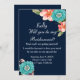 Invitación Azul romántico y floral botánico rosa Dama de hono