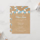 Esta bonita invitación de bautizo o primera comunión cuenta con un fondo rústico kraft, bunting azul y blanco, y un nombre de caligrafía hermosa. El reverso presenta filas de bunting azul y blanco en un fondo de panel rústico kraft a juego.