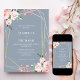 Invitación Azul turbio | Oro | Floral rosa Rubor | BODA