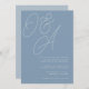 Invitación Azul turbio | Script Watermark Monogram Boda