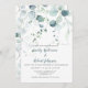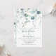 Invitación Azul turbio y eucalipto verde sabio sobre blanco