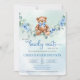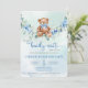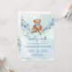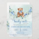 Invitación Azul Verde Floral acuarela Teddy Bear