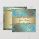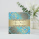 Plantilla de invitación de fiesta de damasco azul turquesa y dorado elegante. Agregue sus datos en la parte delantera y trasera de esta hermosa plantilla de invitación de fiesta azul turquesa y dorado simplemente eligiendo el botón "¡Personalízala!" para comenzar a agregar los detalles de su evento, estilo de fuente, tamaño y color de fuente, y redacción. Tenga en cuenta que todos los diseños de invitaciones que encontrará en Zazzle son gráficos impresos en papel stock plano sin joyas reales, lazos, partes o piezas en relieve, estampadas o agregadas.