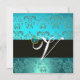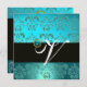 INVITACIÓN AZUL VERDE TURQUESA NEGRO ORO DAMASCO MONOGRAMA