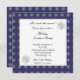 Una invitación maravillosamente elegante que es perfecta para cualquier entretenimiento del invierno. Ofrece un fondo azul marino con pocos copos de nieve de plata por todas partes. El centro es blanco para usted texto de encargo con dos copos de nieve más grandes en las esquinas.