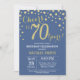 Invitación Azul y Oro 70.º Diamante de Cumpleaños