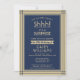¿Puedes guardar un secreto? Invite a la familia y amigos a una elegante y emocionante celebración sorpresa de cumpleaños con invitaciones de fiesta de oro y azul marino personalizado. Todo el texto de esta plantilla es sencillo de personalizar, incluyendo el mensaje que dice "¡Shhh! Es una SORPRESA". El diseño presenta un moderno borde a rayas, una tipografía clásica de arte vintage y una caligrafía de escritura elegante. Tenga en cuenta que el oro es color impreso, no Relieve metalizado metálico. Esta tarjeta se puede personalizar para cualquier año o tipo de evento, y es apta para un hombre o una mujer. ¡Salud y cumpleaños feliz!