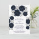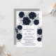Celebra tu día especial con elegancia atemporal con estas peonías azul marino y el purpurina plateado deja la invitación a la boda. Con flores de color azul profundo y adornadas con un acento plateado brillante, este diseño moderno y romántico es perfecto para parejas que buscan una moda y un boda sofisticado. Ideal para bodas formales, celebraciones de invierno o cualquier evento con un toque lujoso. Personalice fácilmente los datos de su boda.