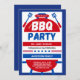 Invitación Azul y Rojo Ilustrado 4 de julio Fiesta de barbaco