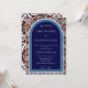 Disfrute del lujo con nuestra invitación de boda contemporánea de azulejo azul y rojo. Personalice este diseño elegante para una celebración que irradia sofisticación y estilo atemporal.