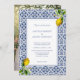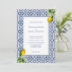 Invitación de boda de limón mediterráneo de la costa de Amalfi Italia, con azulejos azules, limón y marco azul. Simplemente cambie con su foto en la parte posterior.
