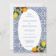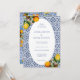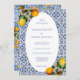 Invitación de boda de limón mediterráneo de Italia Costa de Amalfi, con azulejos azules, limón y marco ovalado.