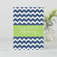 El azul marino oscuro moderno y colorido y los zigzags brillantes del galón de la verde lima raya la invitación del bautizo para el muchacho.
