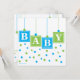Infórmele a sus invitados que un niño bebé está en camino con este diseño de bloques de bebés en color azul y verde, en papel metálico de plata de primera calidad. Creado por petición especial, puede personalizar cada línea para convertirla en la suya.