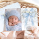 Invitación Baby Boy Baptism Photo Floral Eucalyptus Bow