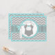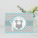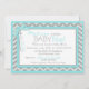 Moda de chevron con contraste acuático y un tierno polka punto puente con corbata de arco y arco de aspecto 3D y cinta para un niño con tarjeta de invitación a la ducha de bebé. Los colores son gris y agua.