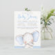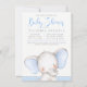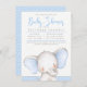 Invitaciones a ducharse con elefantes de elefantes de elefante de elefante de color agua dulce sobre fondo de un punto de polka azul de bebé. Estas adorables invitaciones para una ducha de bebé de elefantes son fáciles de personalizar para tu evento simplemente añadiendo tus detalles.