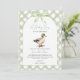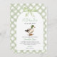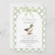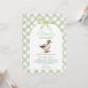 ¡Celebra la llegada de tu niñito con la invitación de Baby Shower de nuestro Baby Boy Mallard Duck! Con un encantador pato acuático mallard, suaves tonos verdes y un fondo de gingham clásico. Ya sea que esté planeando un niño cazando una ducha de bebé de pato o simplemente quiera la estética de los bosques, esta invitación agrega un toque atemporal y adorable. Prepárate para dar la bienvenida a tu pequeño pato con estilo. BBS960