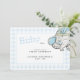 Invitación Baby Shower Blue Gingham Baby Elephant. Azul y blanco. Esquinas redondeadas.
