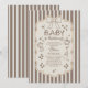 Whimsical Baby is Brewing Baby Shower Invitation. Celebrate the sweetest little arrival with this charming “Baby is Brewing” coffee-themed baby shower invitation. Designed with elegant neutral beige - latte tones, delicate vertical cafe stripes, and a cute coquette bow accent, this invitation features whimsical coffee-inspired illustrations including a moka pot, coffee cup, coffee beans, and baby bottle with milk for a cozy café-style bebe shower.