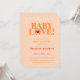 BABY LOVE! Bold and fun baby shower invitation. Peach, orange, and red. LOVE with heart on back of card.