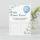 This baby name race game is ideal for hosts looking for an interactive and stimulating activity that gets everyone involved. The gentle eucalyptus and blue balloon design makes it a versatile fit for various baby boy shower themes, from modern botanical to rustic elegant. Guests will enjoy the challenge of coming up with unique names, leading to fun discussions and plenty of smiles.