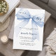Un elegante fondo blanco, decorado con un gran arco azul. Personalice y agregue un nombre y detalles del fiesta. Texto en la proa: ¡Es un niño!