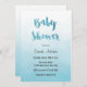 Invitación a la ducha para bebés con fondo de color azul oscuro.