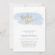 Invitación Baby Shower a color azul y oro acuático
