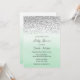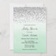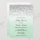Invitación a la ducha de bebé con un diseño de purpurina plateado y un fondo color agua verde oscuro de la menta.