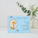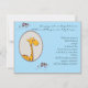 Esta preciosa invitación a una ducha de bebé es una forma maravillosa de invitar a sus invitados a unirse a usted para celebrar su nueva llegada. Este diseño tiene un fondo azul con una jirafa de bebé enmarcada. Hay adornos marrones del corazón. Los detalles de su fiesta van a la derecha y son completamente personalizables. Sólo tienes que añadir los detalles de la ducha y ya estás listo para ir.