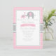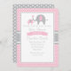 Invitación Baby Shower a los elefantes rosas y gri