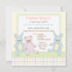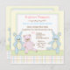 Infórmese a sus huéspedes que los trillizos están en camino con este adorable diseño original. Dos conejitos azules y un bonito oso de peluche rosa decoran esta dulce invitación a la ducha, diseñada especialmente para una ducha tripleta.