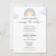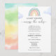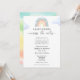 Una ducha de bebé por invitación del correo es perfecta para los que viven a una distancia larga de sus seres queridos, pero aún así quieren ducharse con los padres para estar con amor y regalos para prepararse para la llegada de su bebé. Esta ducha de larga distancia por invitación postal tiene un arco iris dibujado a mano con el poema "Es difícil vivir tan lejos cuando el bebé está en camino. Reunir a los seres queridos puede ser tan difícil Así que si quieres, por favor envía tu regalo o tarjeta. Y a medida que lleguen día a día, sentirán todo tu amor desde lejos". Personalizar con su redacción. Haga clic en "Personalizar más adelante" para editar el estilo de letra, el tamaño y el color si lo desea.