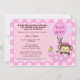 La invitación a la ducha de mono adorable con puntos rosas y polka...mono bebé con un pequeño birdie en el paraguas