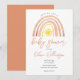 Una invitación de baby shower adorable que presenta un arcoíris y sol de acuarela boho y tipografía elegante. Diseñada por Thisisnotme©