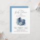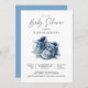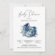 Un lindo y caprichoso zapatos pequeños azules para bebés invitación a una ducha de bebé, en un moderno estilo minimalista de acuarela. Un estilo moderno y audaz.