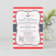 Invitación Baby Shower azul y rojo de la Marina Ná