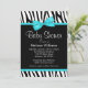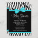 Invitación Baby Shower azul zebra Verde azulado impreso