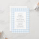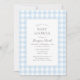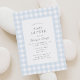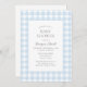 Invite a sus amigos y familiares a compartir la alegría de su llegada con esta elegante invitación a bañarse en una ducha de bebé de gingham azul.