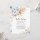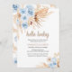 Celebra la próxima llegada de tu pequeña con esta invitación Baby Shower de Blue Pampas Grass Boho. Con un diseño sereno y minimalista, esta invitación reúne flores azules y pasto de pampas para una estética relajante de inspiración bohemia. La mezcla de delicados tonos azules y hierba de pampas de tierra crea el equilibrio perfecto entre naturaleza y elegancia. Ya sea que esté organizando una reunión íntima o un evento más grande, este diseño establece un tono pacífico y elegante para su día especial. BBS387