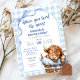 Invitación Baby Shower De Preppy Blue Bow Highland Cow, ¿Has Oído El Baby Shower De Moos Boy, Farm Holy Cow Baby Shower, Tener Vaca Nacida?