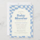 Invitación Baby Shower Blue Retro Groovy 70s Checkerboard