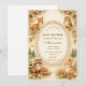 Este encantador diseño de baby shower de bosque presenta adorables animales del bosque reunidos alrededor de un delicado marco vintage, creando una cálida escena de cuento de hadas perfecta para celebrar la llegada de un pequeño. Dulces ilustraciones de un conejo, mapache, ardilla y búho están rodeadas de pequeños hongos, piñas, flores silvestres y suave follaje del bosque. La paleta neutral cálida y el estilo de acuarela suave dan al diseño un ambiente acogedor y nostálgico de guardería inspirado en las ilustraciones clásicas de los libros infantiles. Perfecto para baby showers con tema de naturaleza, celebraciones del bosque o reuniones rústicas en el bosque.