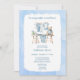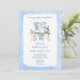 Adorable invitación a una ducha de bebé para un niño con un tema de oso de peluche con ropa de bebé colgada en un tendedero. Tonos azules suaves, bonitos bebebederos y adornos dulces de oso de peluche hacen que esta invitación sea perfecta para recibir un pequeño paquete de alegría.