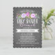 Este Baby Shower Invitation ofrece bonitas flores de color acuático y una mezcla de tipografía moderna, todo ello sobre un fondo de pizarra de moda. ¡Envíe a sus invitados una invitación que no olvidarán! Para una invitación aún más memorable, seleccione una forma cortada, un papel texturado o un papel de doble grueso.